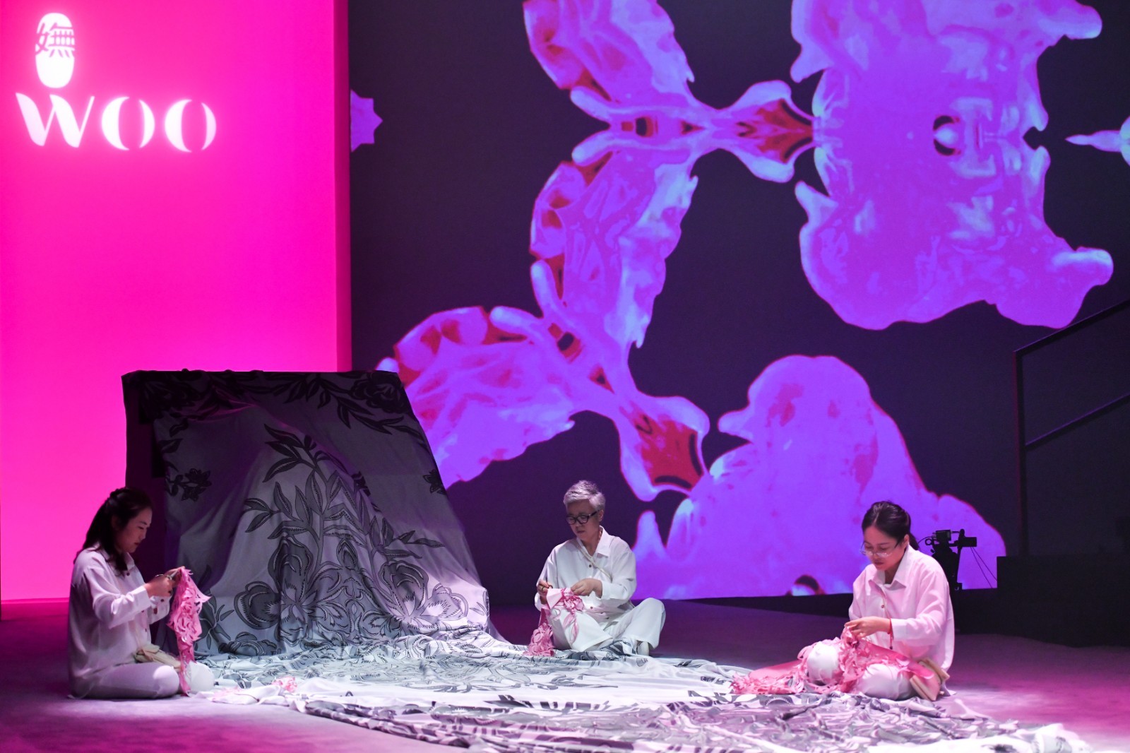 匠心犹在,湛艺恒守。妩WOO在二十周年先锋性地提出“妩之中国新工坊”概念,品牌专属的刺绣工坊将其代表性的苏绣技艺与手绘、烫钻、印花等工艺创新相融,呈献精品之作。此次大秀发布之际,妩WOO也通过三个篇章的系列影片展现“妩之中国新工坊”的精神,记录品牌二十年来对东方美学的坚守、传承与创新。